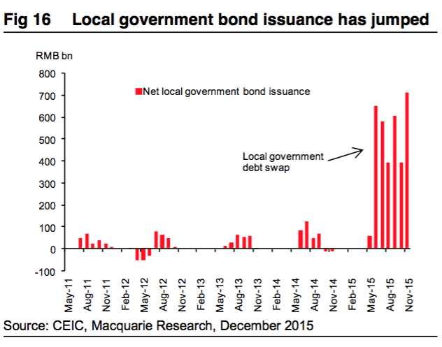一方面隨著地方債務置換的啟動,今年以來地方債券發行規模爆發式增長,來自麥格理和瑞銀: