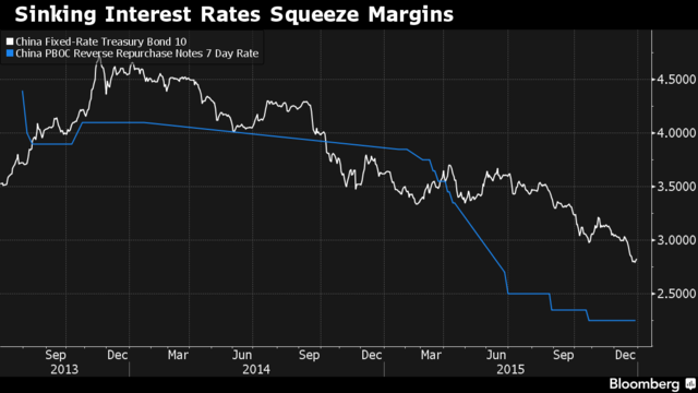 由于央行降低利率,銀行業(yè)的存貸息差正在放緩。此外,來自互聯(lián)網(wǎng)金融的競(jìng)爭(zhēng)也將拉低銀行業(yè)的利潤空間。